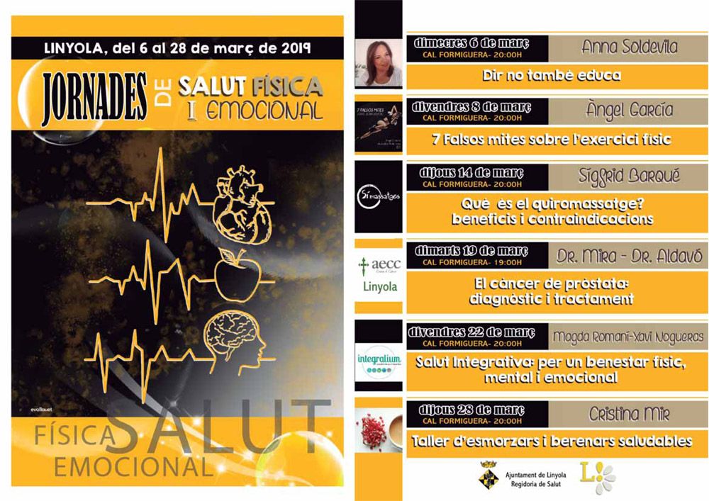 Dimecres 6 de març es donarà el tret de sortida a la primera xerrada del cicle de Jornades de Salut Física i Emocional de Linyola. Aquest cicle de xerrades, organitzat per la regidoria de salut de Linyola està pensat per millorar els hàbits emocionals, d’alimentació i salut dels ciutadans de Linyola, i també poder millorar la seva qualitat de vida.