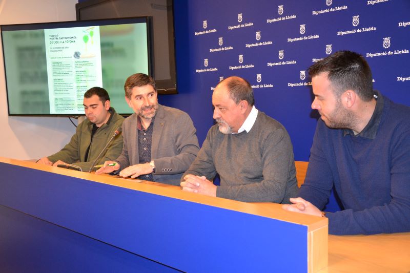 El diputat Òscar Martínez; l’alcalde de Bellaguarda, Olegari Alberich; el regidor de Bellaguarda i soci de la Cooperativa Olis Bellaguarda, Marc Freixenet, i el tècnic de desenvolupament rural i del sector agroalimentari, Andreu Mallada, han presentat aquest dimecres la 7a Mostra Gastronòmica de l’Oli i la Tòfona de Bellaguarda, que se celebrarà diumenge, 22 de febrer, en jornada matinal. L’acte ha comptat amb l’assistència de la diputada Rosalia Carnicé.