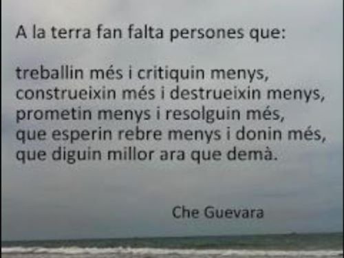 «A la terra fan falta persones que: Treballin més i critiquin menys, construeixin més i destrueixen menys, prometin menys i resolguin més, que esperin rebre menys i donin més, que diguin millor ara que demà «. (CHE GUEVARA)