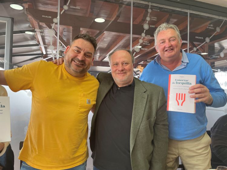 Albert Molins Renter, periodista i escriptor, ha presentat el seu darrer llibre Esmorzars de Forquilla, al restaurant Cal Benito de Lleida. Molins ha compatit esmorzar en aquest establiment amb periodistes, el restaurador Benito Gili, el prescriptor Jonathan Nuevo d’Esmorzars de Forquilla.cat, i clients habituals.