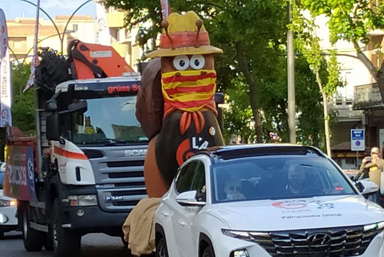 Així el caragol Hèlix, mascota de l’Aplec, ha sortit en cercavila amb un vehicle Hyundai, patrocinador de la festa, pels carrers de la ciutat amb un camió rotulat que també donava l’ambientació musical al recorregut.