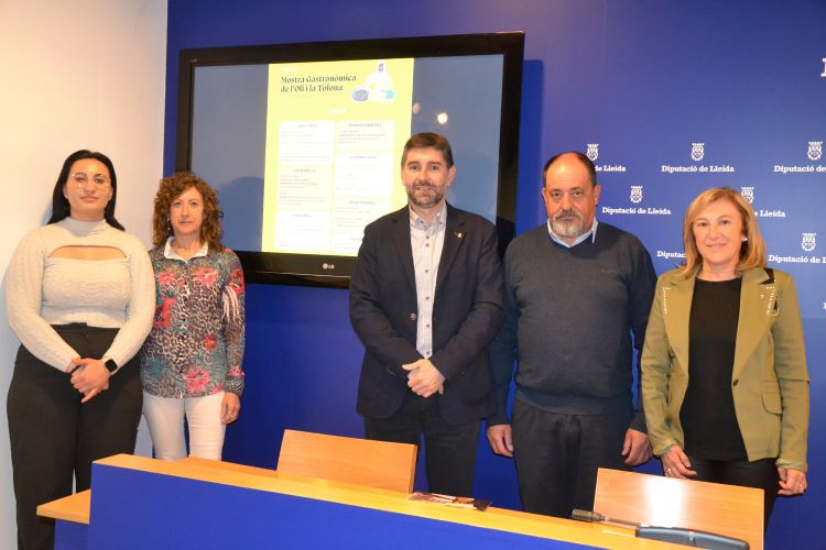 El diputat Òscar Martínez; l’alcalde de Bellaguarda, Olegari Alberich; la presidenta de l’Associació Els Vilars, Dolors Montagut, i la tècnica de desenvolupament rural i del sector agroalimentari de les Garrigues Altes, Judit Tribó, han participat aquest dimecres en la roda de premsa de presentació de la 5a Mostra Gastronòmica de l’Oli i la Tòfona, que tindrà lloc a Bellaguarda el 25 de febrer. La Mostra està organitzada per productors de Bellaguarda, la Cooperativa del Camp i l’Ajuntament.