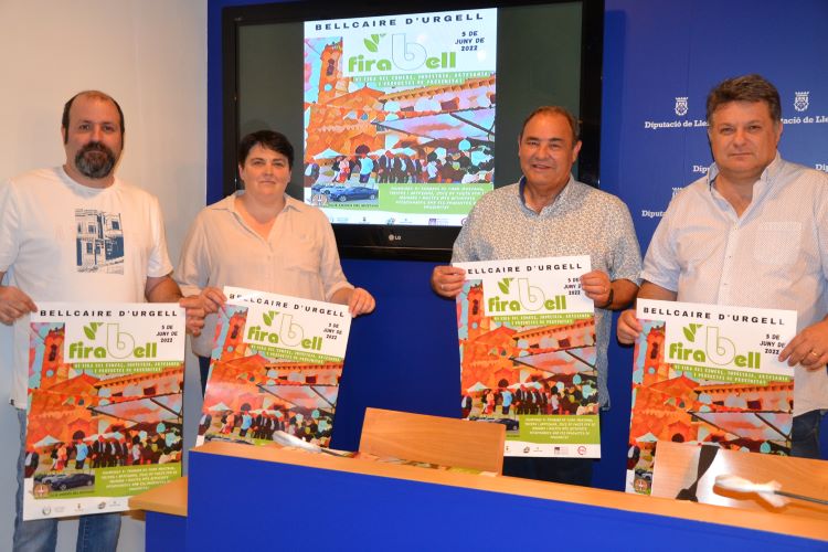 La vicepresidenta Estefania Rufach; l’alcalde de Bellcaire d’Urgell, Jaume Montfort; el primer tinent d’alcalde, Jofre de Juan, i el president de l’Associació d’Empresaris Productors de Venda de Proximitat de Lleida, Llorenç Llop, han presentat aquest dijous la sisena edició de Firabell, la fira del comerç, indústria, artesania i productes de proximitat que se celebra el dia 5 de juny a Bellcaire d’Urgell.