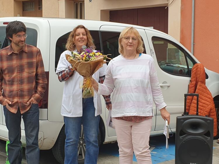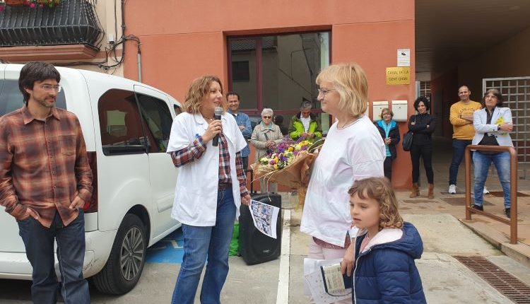 També ha passat pel CAP de Mollerussa, per acomiadar-se de les companyes i en tornar al Palau, al migdia, s’ha trobat la plaça Abadia plena de veïns que s’han aplegat per fer-li un senzill homenatge. Tampoc no s’ho han volgut perdre el seu marit, els fills i nets. El fet de cuidar durant tants anys les persones del Palau d’Anglesola, la fan mereixedora de ser la pregonera de la Festa Major d’estiu, encàrrec que ha acceptat.