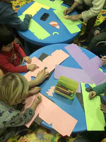 Durant tota la tarda els infants han elaborat petits fanals de cartró, donant color i forma. A l’interior d’aquests han introduït una petita espelma que projectarà la llum a través dels orificis adornats amb papers transparents i de colors. Finalment han subjectat el Fanalet d’un petit bastó.