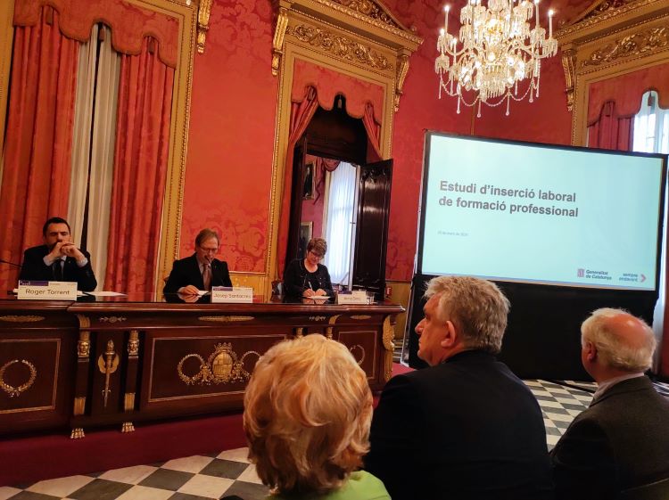 El Departament d’Educació i el Consell General de les Cambres Oficials de Comerç, Indústria i Navegació de Catalunya han presentat aquest dilluns la 17a edició de l’estudi sobre la inserció laboral dels ensenyaments professionals. Entre les principals conclusions, destaca que en l’exercici 2023 es constata una lleugera millora -augmenta del 52,08% al 54,63%- en la inserció laboral dels graduats i graduades en formació professional, respecte de les promocions immediatament anteriors.