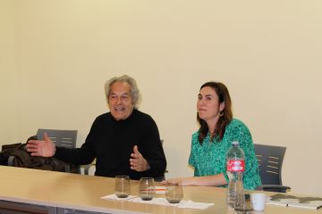 D’una banda, el pintor Xavier González Arnau, que ha inaugurat l’exposició “Trau endins”, i de l’altra, el productor de cinema Paco Poch, que ha explicat la seva experiència en el món de la producció cinematogràfica, especialment en el terreny dels documentals.