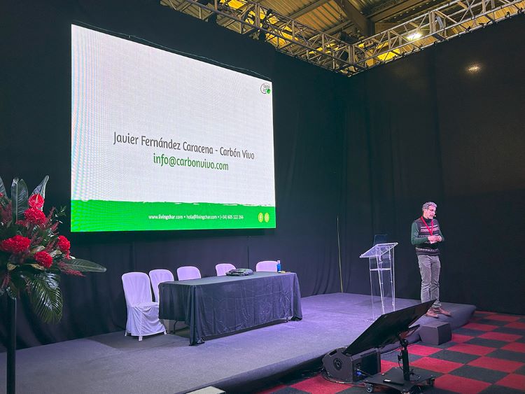 Javier Fernández, director tècnic de Carbón Vivo ha explicat que el “biochar”, també conegut com a biocarbó, és un material que s’utilitza per millorar les propietats i la qualitat dels sòls agrícoles. “Es tracta d’un producte ric en carboni orgànic que es manté als sòls durant segles. El biochar es produeix a partir de materials 100% naturals i, en aplicar-lo als sòls, aporta nombrosos beneficis”.