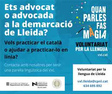 En el cas de la demarcació de Lleida, els advocats interessats a participar de l’experiència han de posar-se en contacte amb el Centre de Normalització Lingüística de Lleida, al correu vxl.lleida@cpnl.cat o al telèfon 634 695 892.