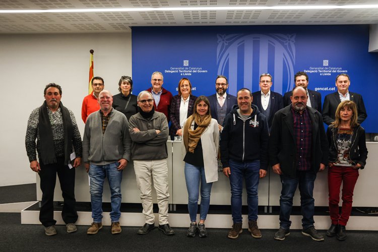 El conseller de Territori, Juli Fernàndez i Olivares, la delegada del Govern a Lleida, Montse Bergés i Saura, el president de la Diputació, Joan Talarn i Gilabert, i els alcaldes i alcaldesses de diversos municipis de les Garrigues, han presentat l’acord d’actuacions. Són els municipis de: Torrebesses, Granyena de les Garrigues, el Cogul, Castelldans, Bellaguarda, la Granadella, els Torms i el Soleràs.