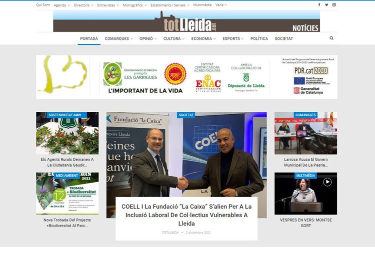 totlleida.cat NOTÍCIES té com a àmbits de difusió la informació general. Amb especial atenció a la comunicació corporativa i empresarial, (1r. Diari digital especialitzat en el món de l’empresa, del màrqueting, de la promoció ...