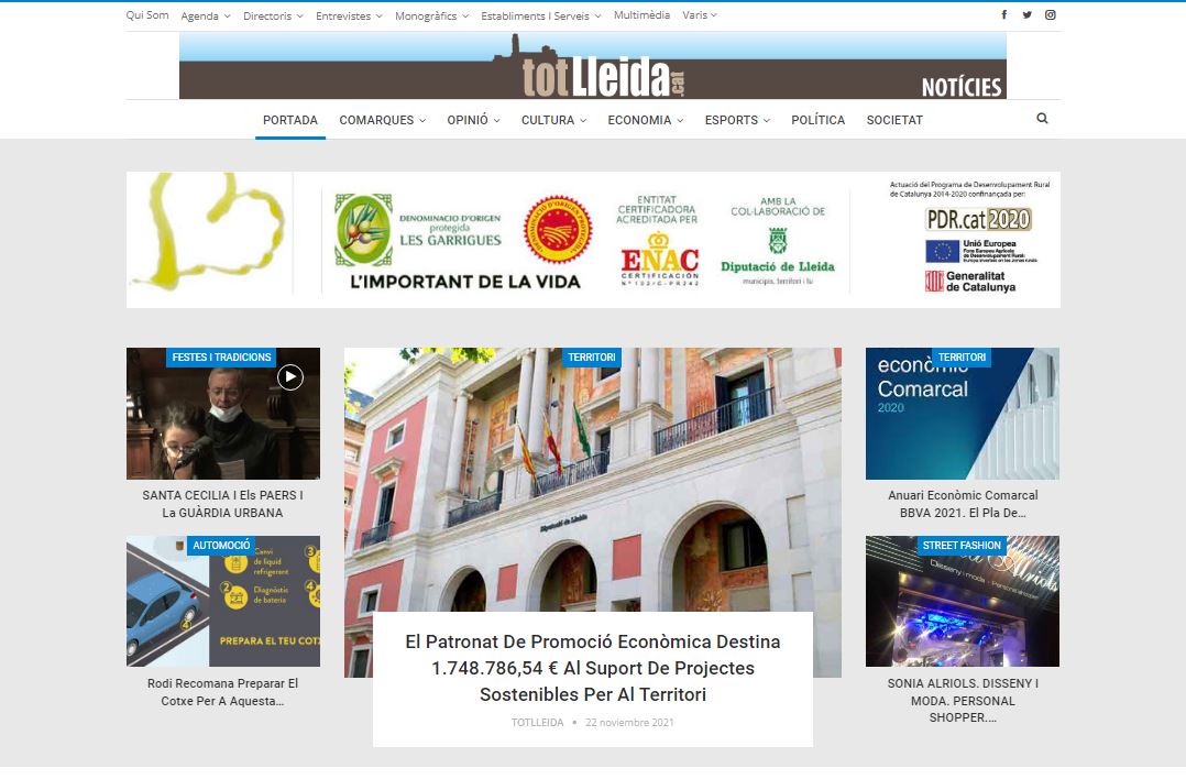 totlleida.cat NOTÍCIES té com a àmbits de difusió la informació general. Amb especial atenció a la comunicació corporativa i empresarial, (1r. Diari digital especialitzat en el món de l’empresa, del màrqueting, de la promoció ...
