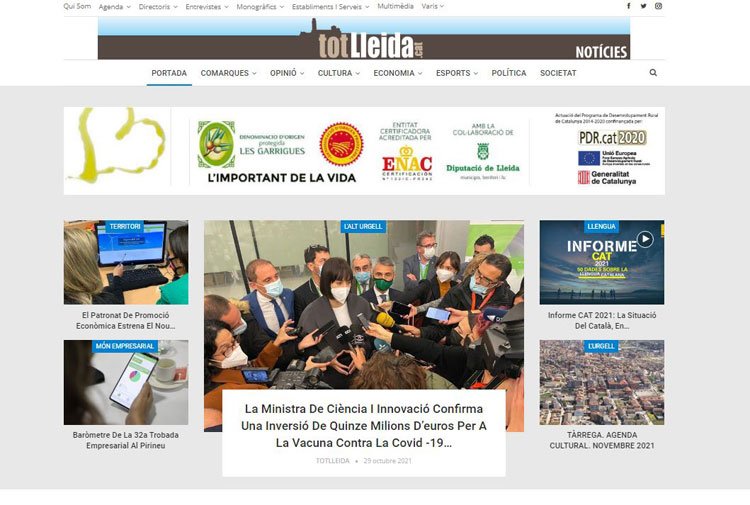 totlleida.cat NOTÍCIES té com a àmbits de difusió la informació general. Amb especial atenció a la comunicació corporativa i empresarial, (1r. Diari digital especialitzat en el món de l’empresa, del màrqueting, de la promoció ...