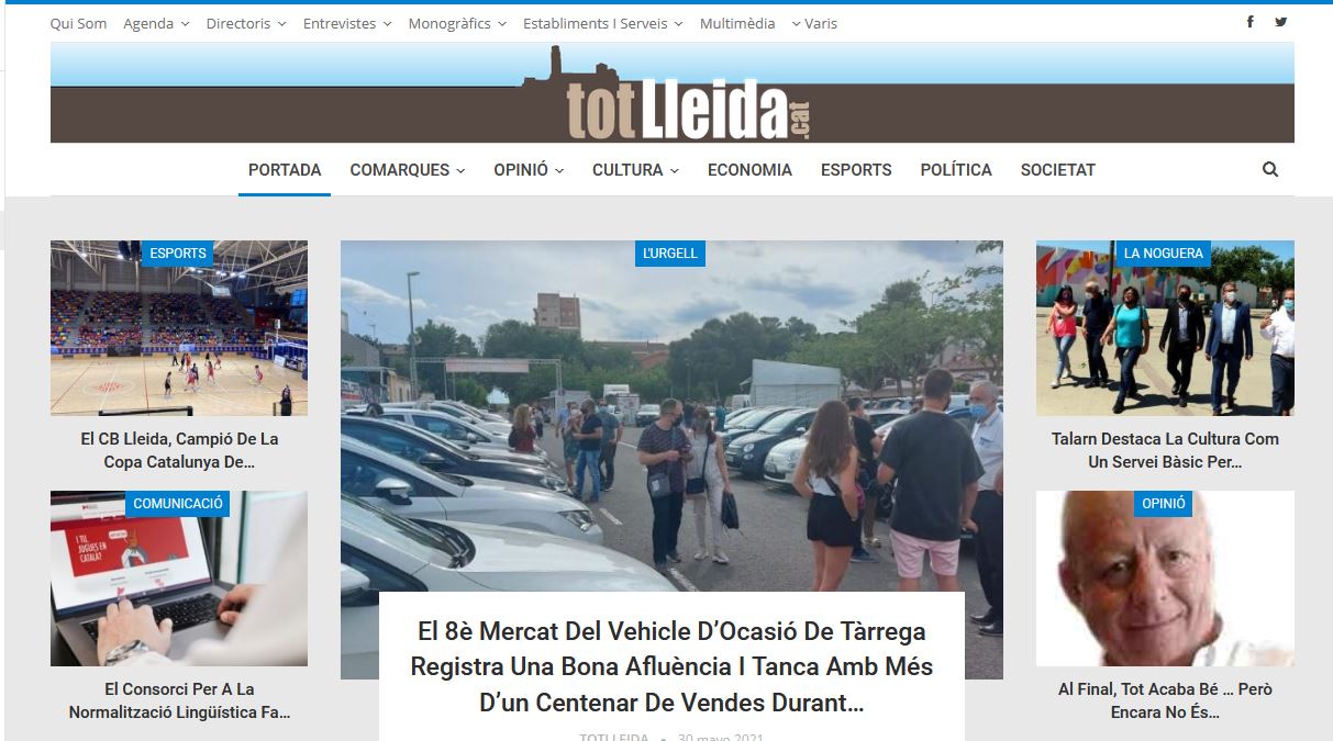 Totlleida.cat. Diari digital de proximitat, té com a àmbits de difusió la informació general amb especial atenció a la informació corporativa i empresarial, 1er. diari digital especialitzat en el món de l’empresa, del màrqueting, de la promoció…