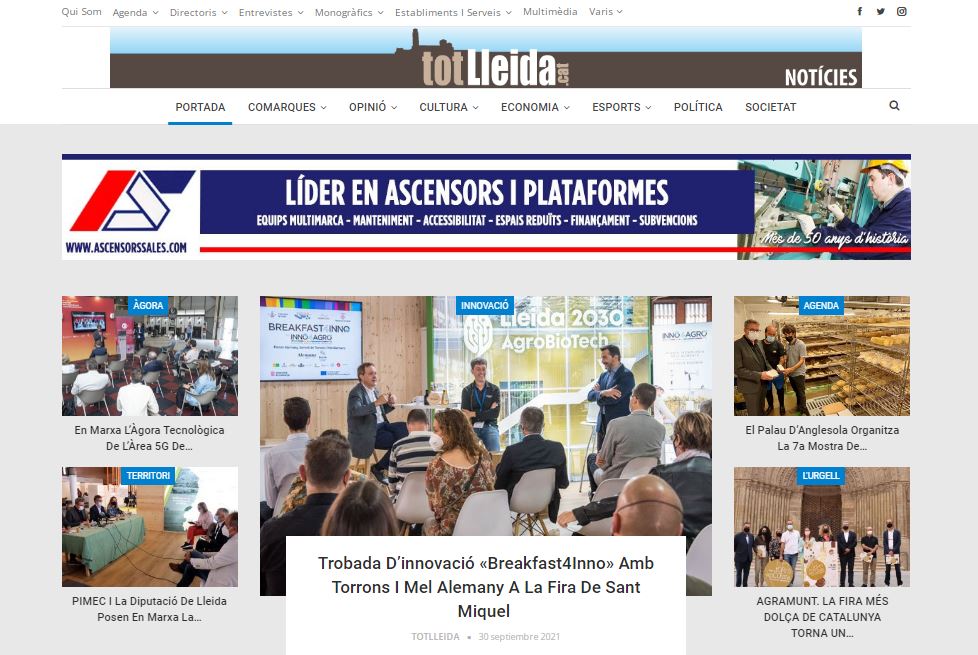 totlleida.cat NOTÍCIES té com a àmbits de difusió la informació general. Amb especial atenció a la comunicació corporativa i empresarial, (1r. Diari digital especialitzat en el món de l’empresa, del màrqueting, de la promoció ...