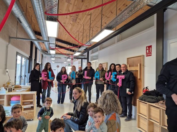 La consellera d’Educació, Esther Niubó, ha descobert el nom oficial de l’escola bressol, escollit per votació popular: EL PALAUET. I ha ofert una polsera a tots els assistents, amb el nom de l’escoleta. Les educadores han explicat el projecte educatiu del centre, que, com els espais, ha captivat els responsables polítics.