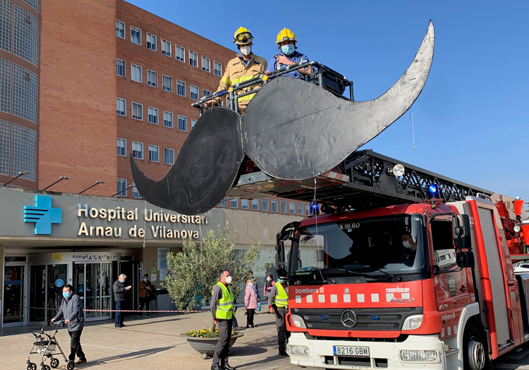 Els Bombers pengen un bigoti gegant a l’Hospital Arnau de Vilanova per donar visibilitat a la salut masculina