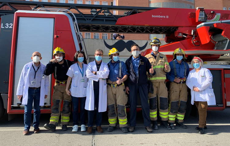 Els Bombers pengen un bigoti gegant a l’Hospital Arnau de Vilanova per donar visibilitat a la salut masculina
