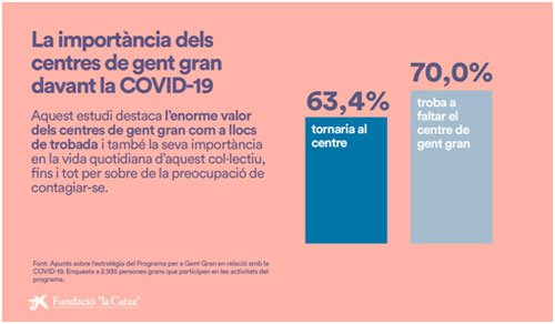 El 73 % de les persones grans han manifestat la necessitat de tornar al centre, i el 63,4 % hi tornarien malgrat un possible contagi, segons es desprèn d’un estudi fet per l’entitat en relació amb la COVID-19.