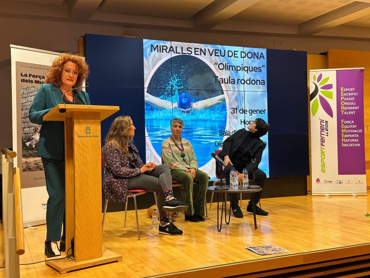 La diputada d’Igualtat i Cooperació Internacional, Sandra Marco, ha donat la benvinguda de la taula rodona ‘Miralls en veu de dona: Olímpiques’, que s’ha celebrat a la Sala d’Actes del Palau de la Diputació, sota l’organització d’Esport Femení Lleida.