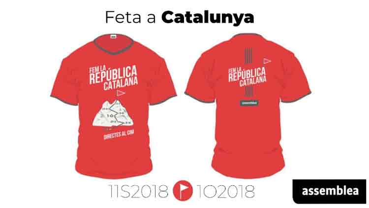 La Diada recorrerà la Diagonal de Bacelona, des de Palau Reial fins a Glòries. La samarreta d’enguany serà d’un color corall molt vistós. Inspirada amb la brida de l’1-O, “element que garanteix la transparència de la votació”, segons Elisenda Romeu, coordinadora de mobilització de l’ANC. La samarreta lluirà una imatge d’una muntanya davant, amb les diverses etapes que s’han fet i que encara falten per fer el cim, representant simbòlicament amb una banderola, que és la República catalana. La muntanya, el Pedraforca, s’ha triat pel seu simbolisme i per la seva fàcil identificació, i representa “l’esforç col·lectiu i la solidaritat que calen per superar els obstacles”.