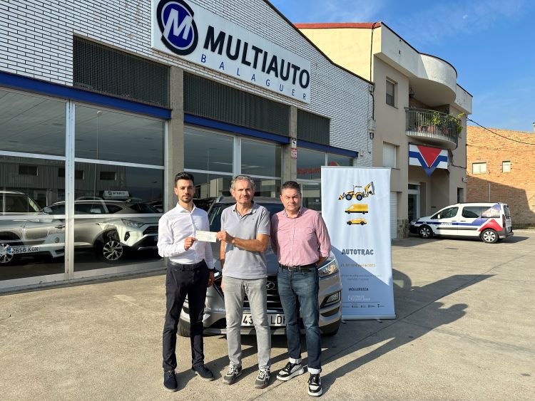 El vicepresident de Fira de Mollerussa, Joel Bastons, ha lliurat aquest matí els premis de 6.000 i 3.000 euros corresponents als sortejos realitzats entre els compradors d’un cotxe al 42è Saló de l’Automòbil de la 150a Fira de Sant Josep i a la 33a fira Autotrac, celebrats el passat mes de març i abril, respectivament. A l’acte d’avui cal afegir l’entrega fa uns dies d’un tercer taló, de 6.000 euros, per l’adquisició d’un automòbil a la 149a Fira de Sant Josep, del 2022. En total, 15.000 euros que l’ens firal de la capital del Pla d’Urgell i els expositors del sector patrocinen per fomentar la venda in situ en el marc dels certàmens; unes vendes que entre aquests tres certàmens van ascendir a 432 vehicles per una suma de 12.793.502 euros.