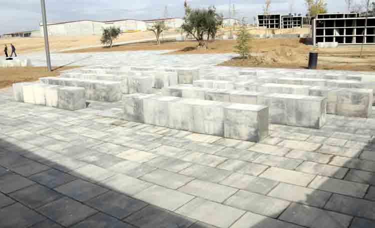 Pla obert del nou cementiri d'Alcarràs on s'hi pot veure alguns dels mòduls de nínxols separats i una zona enjardinada, l'1 de novembre de 2019. FOTO. ANNA BERGA