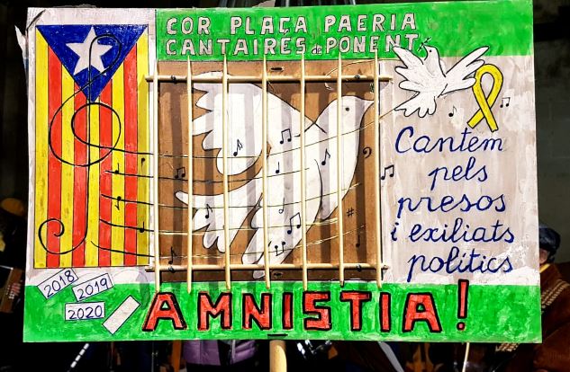 Aquest dilluns 23 de novembre de 2020 es compleixen 3 anys ( de fet fou un 20 N) de què els Cantaires de Ponent canten a la Plaça Paeria, a favor dels presos polítics i també dels exiliats.