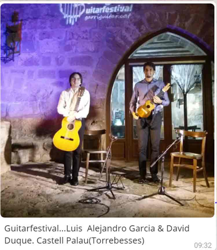 GUITARFESTIVAL. Imatge de l’actuació de Luis Alejandro García, Guitarra clàssica, & David Duc timple canari, al Castell Palau Torrebesses