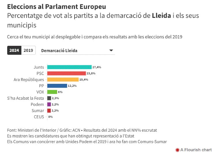 Junts guanya el 9-J a Lleida amb el 27,4% dels vots, per davant del PSC (23,8%) i ERC (19,3%)