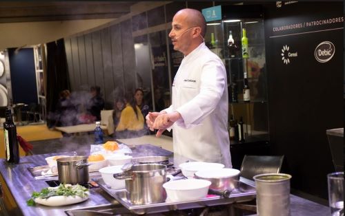 Joel Castanyé, xef del restaurant La Boscana * de Bellvís – Pla d'Urgell (Lleida) va fer un showcooking, a la jornada dedicada al Pastry, per acostar una proposta de territori amb la fruita de Lleida com a protagonista