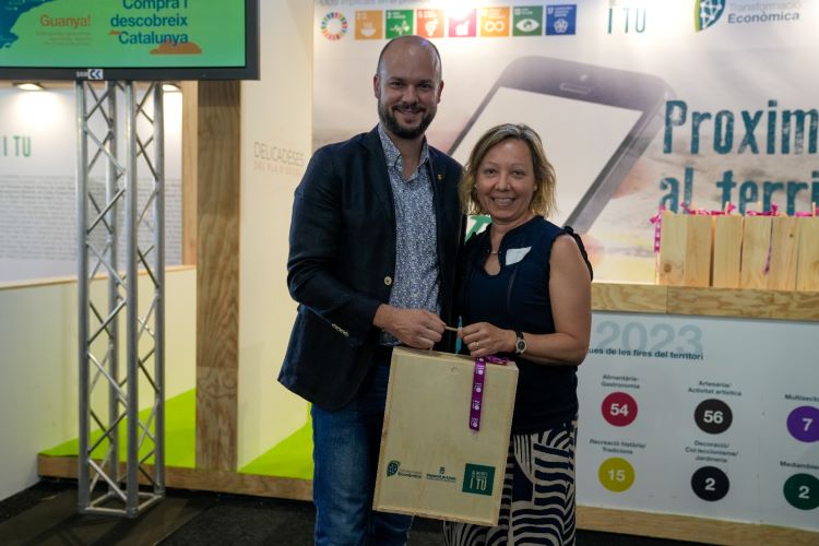 En el marc de la Fira de Sant Miquel, el diputat i vicepresident del Patronat de Promoció Econòmica, Jordi Verdú ha estat l’encarregat de lliurat un lot de productes de proximitat als 34 premiats de la 13a edició de la campanya “Compra i descobreix Catalunya”