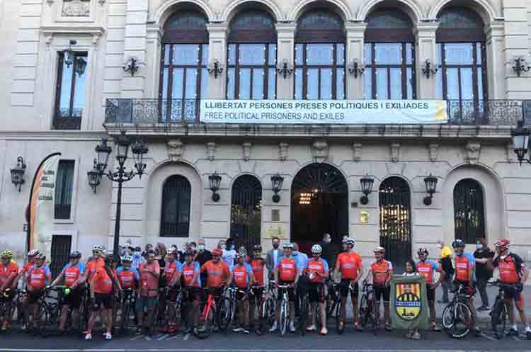 Recepció de la caravana de ciclistes i vehicles a la Paeria, on s'ha llegit el manifest dedicat a les víctimes de la Covid-19