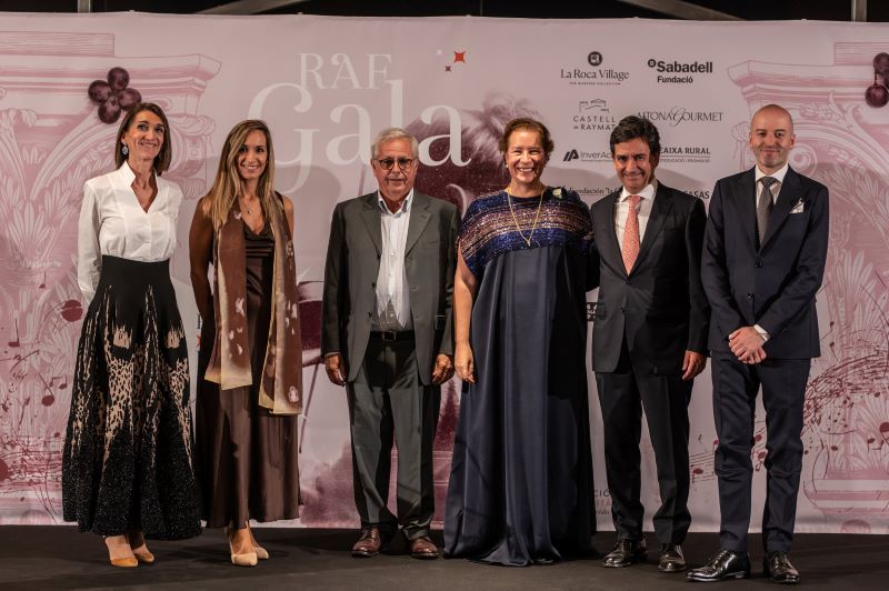 A la imatge, d’esquerra a dreta: Yasmina Vilagrasa, Laia Rogel, Manuel Raventós, Elena de Carandini, Luis Mas i Joan Plana, membres del Patronat de la Fundació Comunitària Raimat Lleida, durant la RAF Gala 2025.