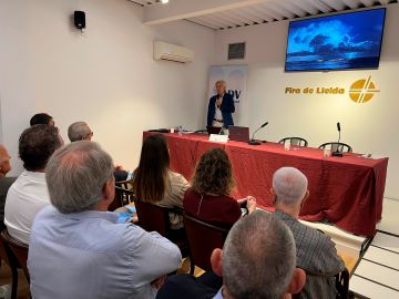 El catedràtic José Luis Sánchez diu a la Fira de Sant Miquel que la tendència apunta a menys dies de pedregades però amb una dimensió de la pedra superior