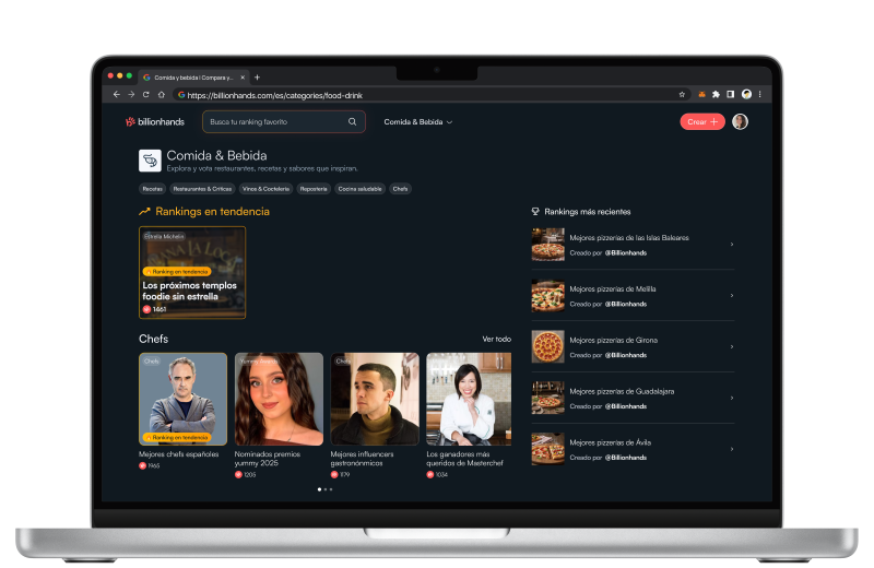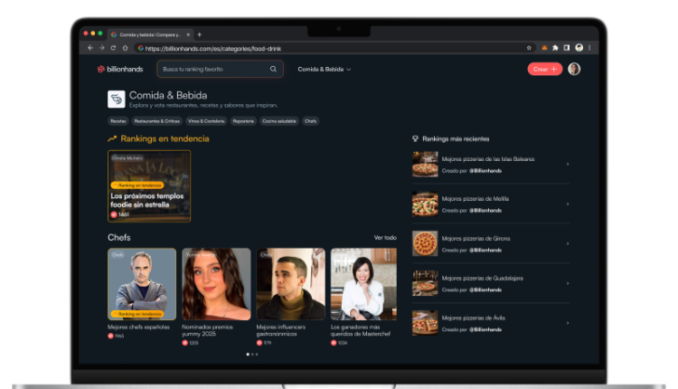 La opinión colectiva convertida en una clasificación verificable establece la base del modelo que impulsa Billionhands, una iniciativa dirigida por Nicolás Luca de Tena, que crea rankings de negocios, productos y servicios a partir de los votos registrados por los usuarios. Este sistema permite la elaboración de listados comparativos por categorías y presenta el ranking como una herramienta de consulta diseñada mediante la participación activa y su propia IA, llamada BILL.