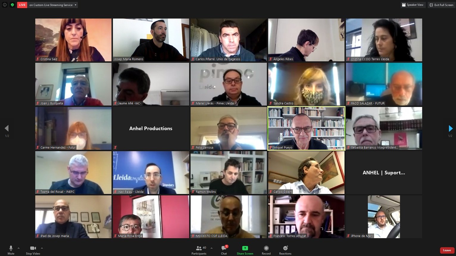L’alcalde de Lleida, Miquel Pueyo, ha presidit aquest matí la segona reunió de la Mesa Transversal per a la recuperació de la ciutat, constituïda el passat mes de setembre amb l’objectiu de treballar des de la diversitat i la participació directa de les entitats integrants de la mesa, en el futur de Lleida. En la trobada, que s’ha realitzat de manera telemàtica, el paer en cap ha presentat el document de bases per a la recuperació econòmica de la ciutat que recull les aportacions del teixit econòmic, social i cultural de Lleida representat a la mesa.