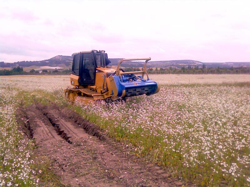 Dentro de los servicios auxiliares de los movimientos de Tierras en saneos de terrenos antes de obra, nuestras Trituradoras acoplables a tractores de excavación y empuje (tipo convencional o Bulldozer) con sistemas de accionamiento hidráulico para la limpieza previa antes de obra, de leñosos y herbáceos, disminuyendo el volumen en el transporte de cargas en obra. (Apertura de caminos en selvas, destoconado de árboles)