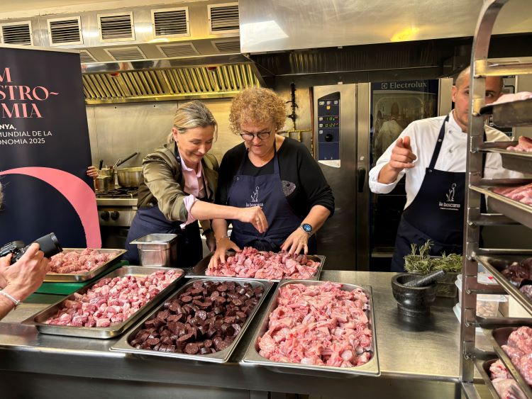 FOTO. La secretària d’Alimentació, Rosa Cubel, cuinant amb les Gastrosàvies i el xef Joel Castañé al restaurant La Boscana.