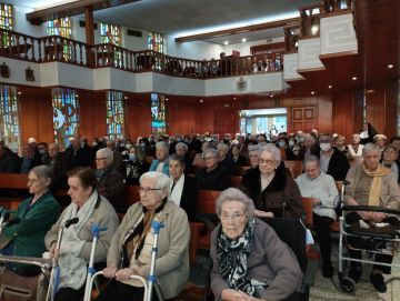 A l’entrar a la residència ja vaig percebre l’ambient de festa a la casa. La capella, guarnida de flors com corresponia a la solemnitat de la jornada, estava gairebé plena de residents i gent del poble. Mentre es feia l’hora de començar la Missa, la mare Carmen l’actual superiora anava rebent a tothom a la porta amb la seva bonhomia que la caracteritza, mentre els cantaires de la Coral de Soses preparaven les seves veus per solemnitzar la celebració i cal dir que ho van fer força bé.