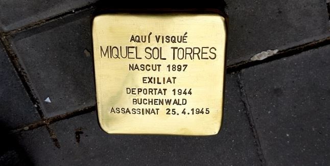 La llamborda escollida per ser col·locada avui ha estat la de Miquel Sol Torres, nascut a Lleida el dia 5 d’octubre de 1897. Miquel Sol va ser mestre republicà i va desenvolupar el càrrec de director administratiu de la Casa de la Beneficència de Lleida durant la República. Es va exiliar a França i va entrar a formar part de la xarxa Ponzán, que ajudava a fugitius dels nazis a passar a Espanya. L’any 1942 va ser detingut i després de passar per diversos centres de detenció és traslladat al camp de Buchenwald (Alemanya). Seria assassinat el dia 25 d’abril de 1945, pocs dies abans de l’alliberació del camp pels aliats.