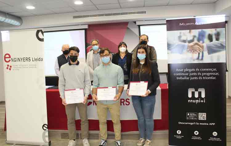 El premi Enginy Miquel Aixalà 2020, concedit pel Col·legi d’Enginyers Graduats i d’Enginyers Tècnics Industrials de Lleida-Enginyers Lleida i l’Escola Politècnica Superior de la Universitat de Lleida (UPS-UdL), ha atorgat a més un segon premi de 450 euros i un tercer de 250 euros que han estat per Ginesta Jové i Eduard Peguera, respectivament. A més de la dotació econòmica, els tres guanyadors tindran col·legiació gratuïta al CETILL durant un any, un descompte del 50% el segon any, assegurança d’accidents MUPITI gratuïta, descomptes en formació organitzada per Enginyers Lleida amb una quantia de fins a 100 euros i beca per sol·licitar l’Acreditació de Desenvolupament Professional Continu.
