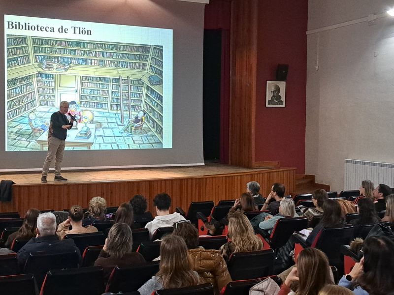 El ponent va recordar que l’aprenentatge lingüístic neix del joc i de la imitació, molt abans de l’escola, i que aquest component lúdic és clau per entendre la relació que establim amb la llengua al llarg de la vida. “Tots hem après a parlar per plaer, jugant, reproduint el que sentíem a casa, al nostre entorn més proper”, va afirmar.