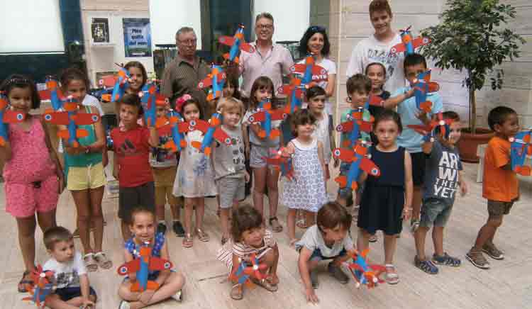 Els nens i nenes participants, que han estat en tot moment acompanyats pels seus pares o familiars, han confeccionat uns bonics fanalets de cartró amb forma d’avió, amb els quals podran participar en la tradicional Romeria dels Fanalets, que tindrà lloc el proper 24 de juliol i també prendre part en el Concurs de Fanalets organitzat per l’Agrupació de Pessebristes.
