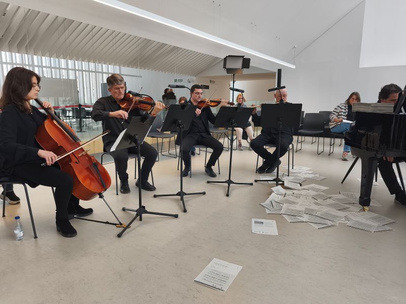 L’acte, organitzat conjuntament amb l’Auditori Municipal Enric Granados, ha ofereit al públic l’oportunitat d’endinsar-se en una experiència sonora excepcional. El pianista Joan Bagés afrontava la interpretació de les 840 repeticions que indica la partitura original, mentre el Quartet Prysma (Joan Sancho, Xesco Grau, Enric Boleda i Esther Trilla) intervenia creant un paisatge sonor que acompanyava i transformava la percepció de la repetició, convertint-la en memòria, resistència i contemplació. Més de 250 persones han poguts gaudir del concert que finalitzava a les 12 de la nit