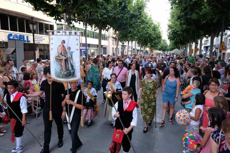 Darrera les autoritats seguia la banda municipal que precedia amb les notes musicals de la marxa “Sant Jaume ve de Galícia”, la carrossa on anava la imatge de Sant Jaume, obra de l’escultor Jaume Gort (1964), il·luminada i guarnida de flors. La novetat d’enguany fou la recuperació de la figura del Sant Jaume “vivent” que fins els any 50 anava davant de la carrossa de Sant Jaume, en aquest ocasió representada per l’actor del grup TOAR Jordi Nicuesa al qual acompanyava una nena d’angelet amb el seu fanalet. És tracta d’una iniciativa que donà més solemnitat i brillantor a la Romeria, alhora que recuperà un antic costum.
