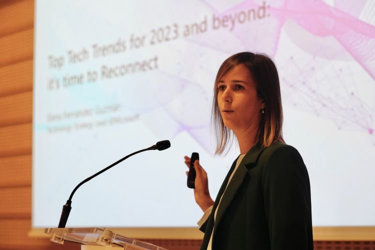 L’acte ha comptat amb la ponència de l’Elena Fernández Guzmán, actual Digital & Tech Strategy Lead for Retail & Consumer Goods de la companyia Microsoft. Fernández ha exposat les tendències tecnològiques que es preveuen per als anys vinents, i de com aquestes impactaran en la realitat de les empreses i la societat en general, la més comentada i que continuarà sonant, el Metavers.