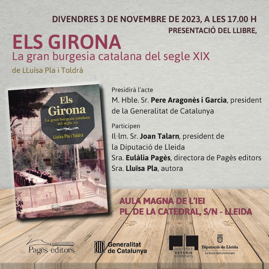 Presentació del llibre ELS GIRONA. La gran burgesia catalana del segle XIX de Lluïsa Pla i Toldrà.