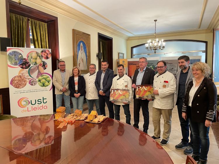 El president de la Diputació de Lleida, Joan Talarn, acompanyat del vicepresident Agustí Jiménez; les diputades Núria Palau i Rosalia Carnicé i els diputats Òscar Martínez i Joan Simeón, ha rebut aquest dimecres els membres del Gremi de Forners de les Terres de Lleida, encapçalats pel seu president, Toni Frias, que han fet la tradicional presentació i lliurament del pa que elaboren amb motiu de la diada de Sant Jordi. També hi ha assistit el vicepresident del gremi, Raúl Arredondo, i el membre de la junta, Manel Llaràs.