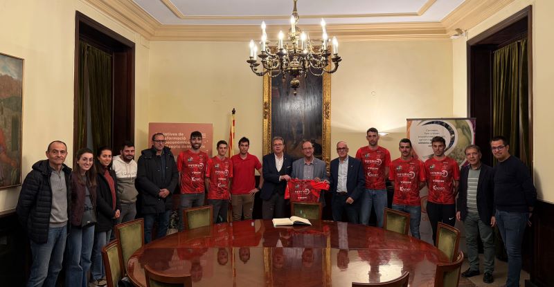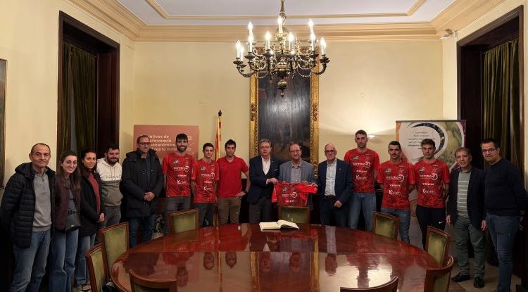 El president de la Diputació de Lleida, Joan Talarn, acompanyat de la vicepresidenta Sandra Castro, i els diputats Fermí Masot i Toni Carré, ha rebut aquest dijous els components del Club Ciclista Lleida, que enguany s’ha proclamat guanyador de les Grans Clàssiques amb l’equip elit sub-23.